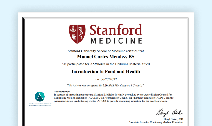 स्टैनफोर्ड मेडिसिन फ्री सर्टिफिकेट और सीएमई क्रेडिट