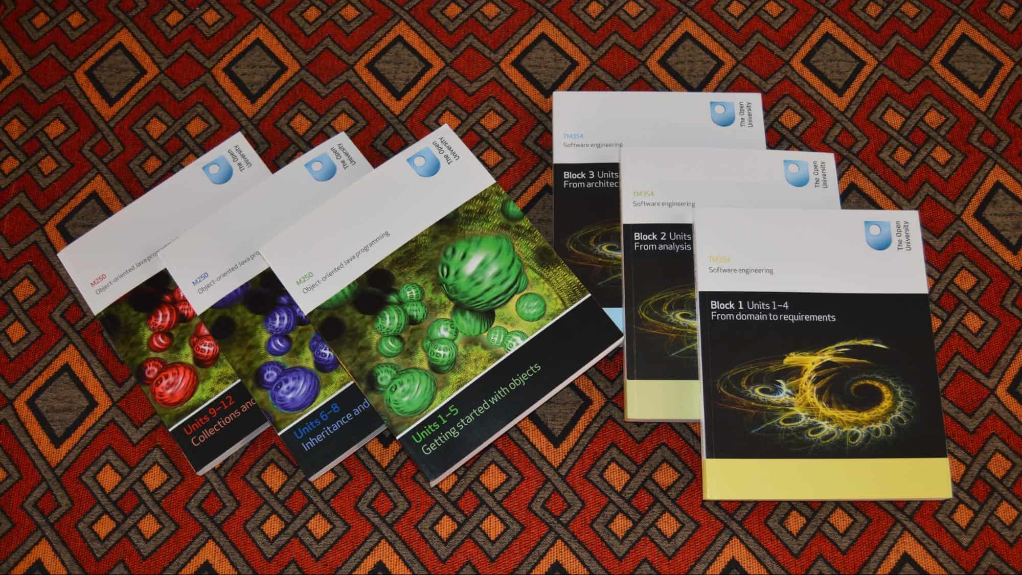 मुक्त विश्वविद्यालय पारंपरिक शिक्षण सामग्री में दृढ़ विश्वास रखता है, जिसका निर्माण वे 1971 से इन-हाउस कर रहे हैं और पाठ्यक्रम शुल्क में शामिल हैं। कक्षाएं शुरू होने से कुछ हफ्ते पहले, आपको पाठ्यपुस्तकों, यूएसबी फ्लैश ड्राइव और कभी-कभी विशेष उपकरण वाले यूके-स्टैंप वाला पैकेज प्राप्त होगा।